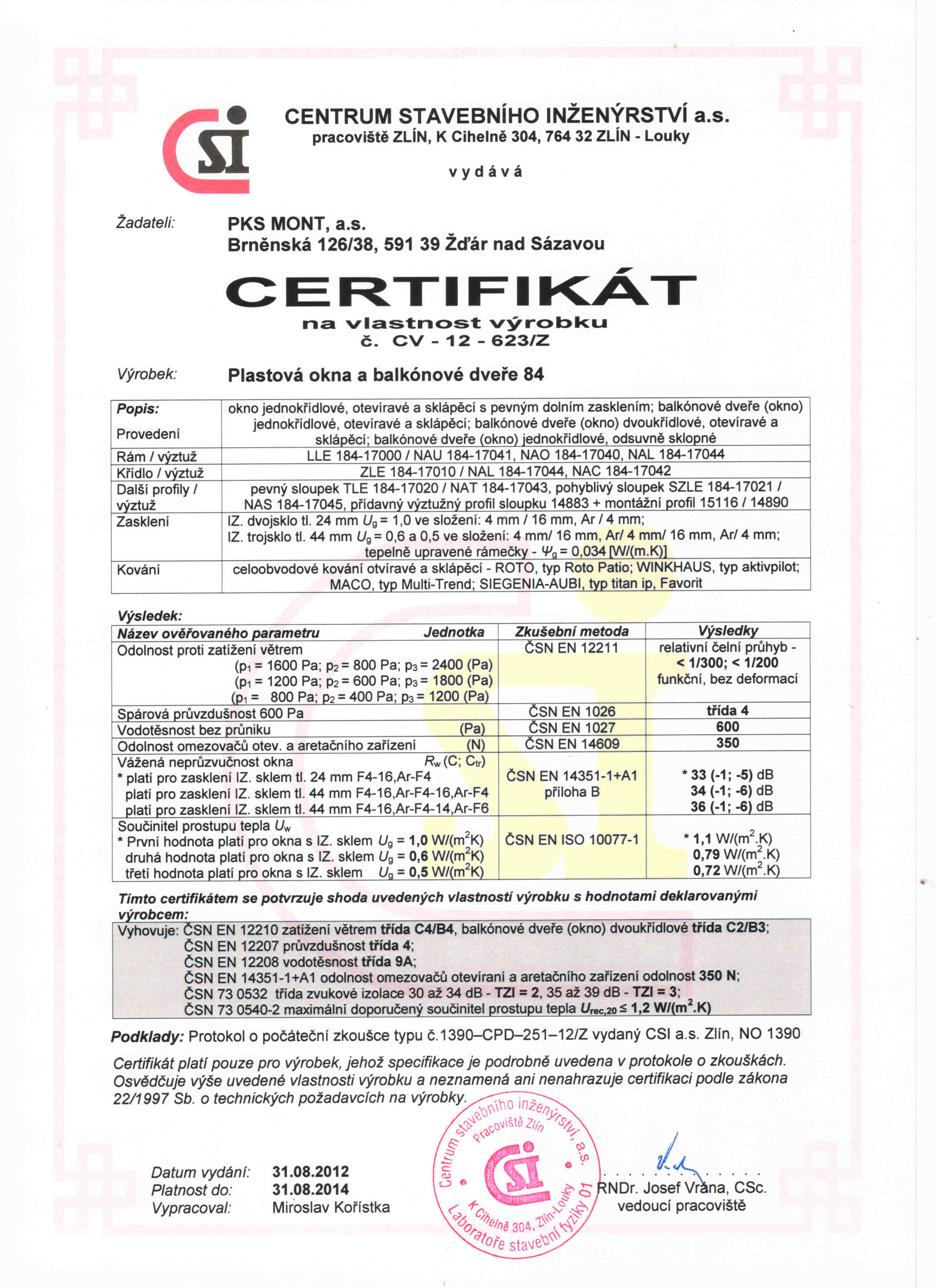 Uf pod 1,0 W/m2.K ( přesně 0,95 W/m2.K) a který získal prestižní stříbrnou cenu v soutěži Stavební výrobek - technologie roku 2010..