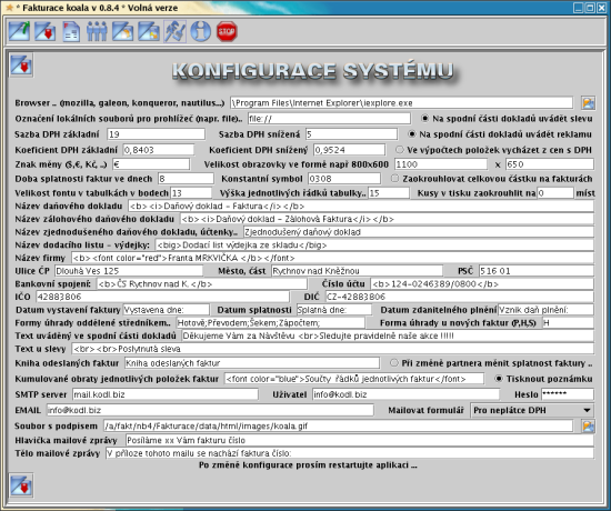 Všechny výstupní formuláře můžeme upravit namíru jakýmkoliv požadavkům. Všechny vystavené formuláře lze velmi lehce odeslat elektronickou poštou. Aplikace obsahuje také podrobnou příručku s vysvětlením všech pracovních postupů. V aplikaci je automaticky zapracován systém slev. Díky použité technologii Vám pokud to bude potřeba tuto aplikaci můžeme přizpůsobit během velmi krátké doby (řádově dny nebo hodiny). Pro vážné zájemce můžeme dodat i definice formulářů v němčině, angličtině a slovenčině (popř. Vám upravíme formuláře do jakéhokoliv jazyka, podle Vámi dodaného vzoru). Download programu zahájíte kliknutím na jeho obrázek ... Pokud Vám stažená aplikace nejde spustit, zkuste prosím ještě tuto verzi se zabudovaným runtime, která je ke stažení zde